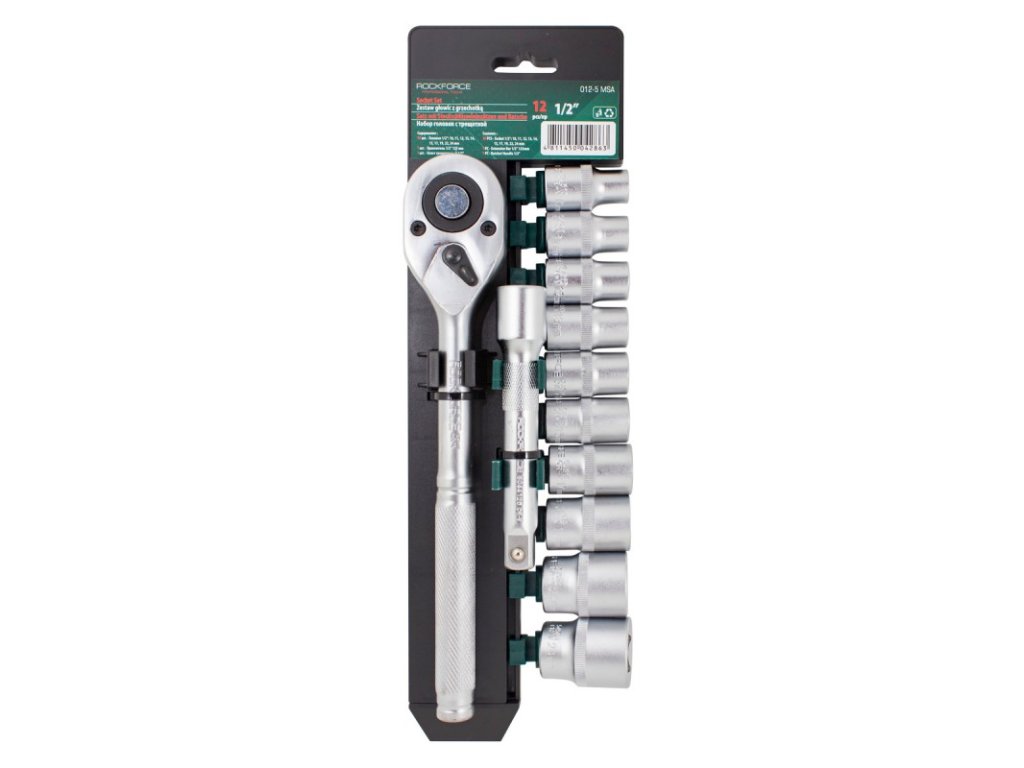 Set šesterokutnih nasadnih ključeva uključuje uobičajene veličine od 10 do 24 mm, račvu s nazubljenom ručkom i produžnu osovinu. Izrađen od izdržljivog Cr-V krom vanadij čelika.