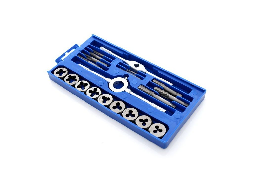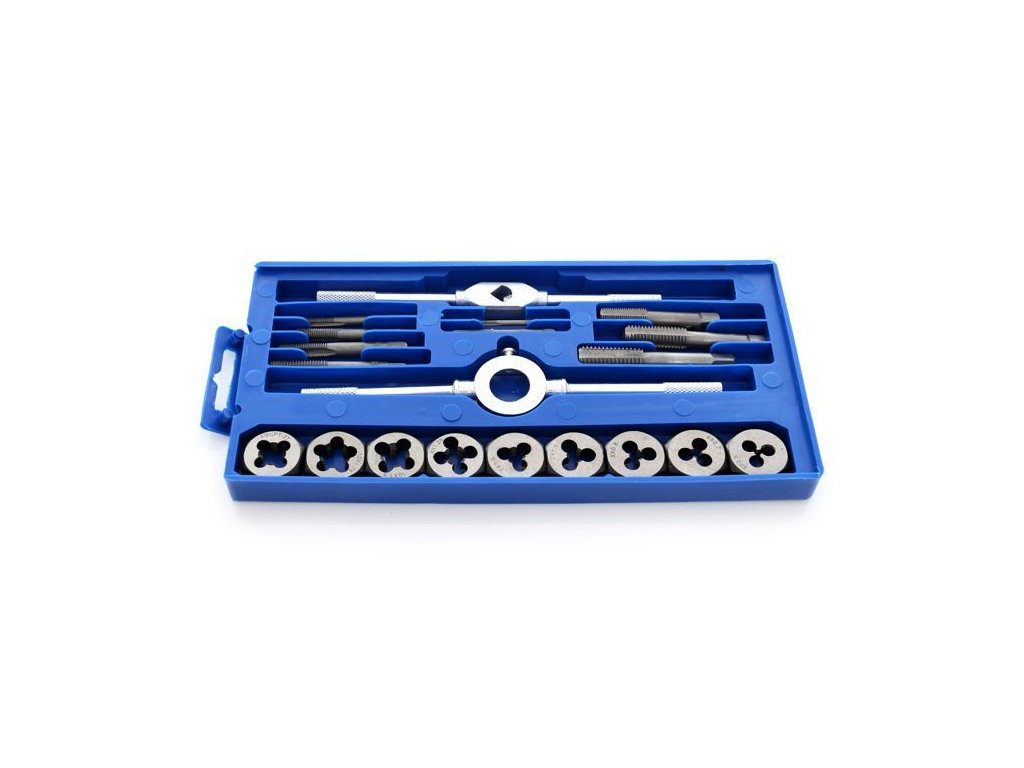 20-dijelni set narezača navoja i matrica KD10288. Profesionalni set navojnih alata Kraft&Dele, model KD10288. Alati su udobni za uporabu, vrlo kvalitetno izrađeni i neophodni u svakoj radionici, kućnoj radionici ili radnom pogonu. Set služi za popravke navoja svih vrsta u većini materijala. Proizvedeno od visokokvalitetne tvrde čelika.