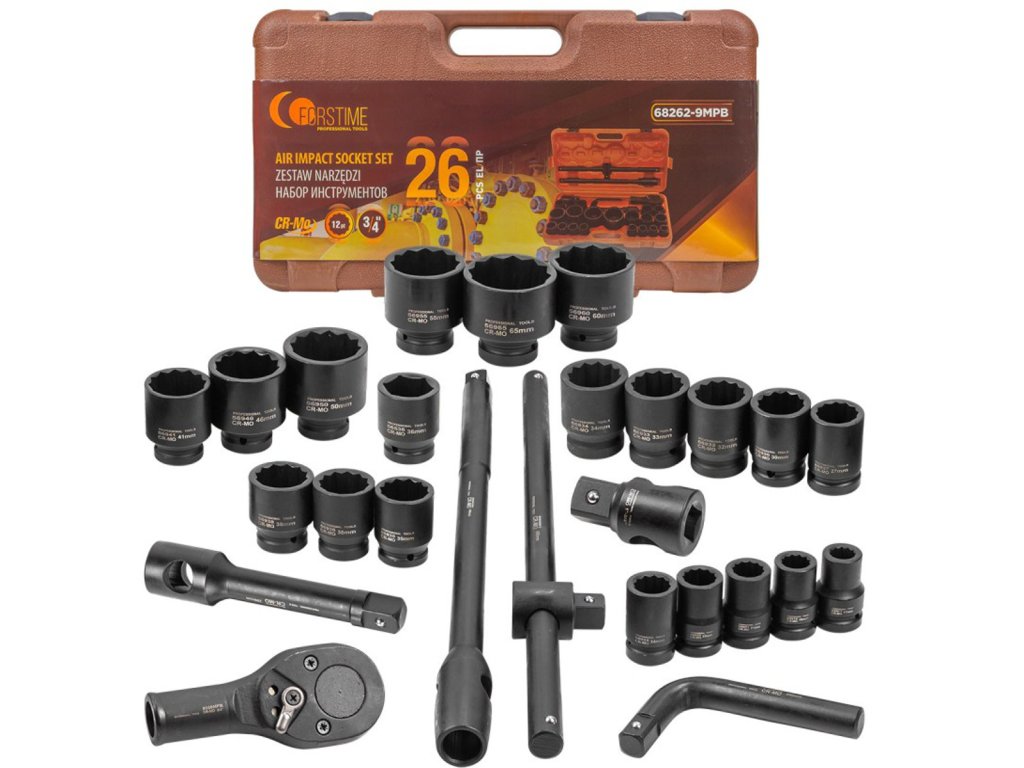 3/4" set udarnih nasadnih ključeva s 12 krakova 17–65 mm, 26 dijelova, u kutiji