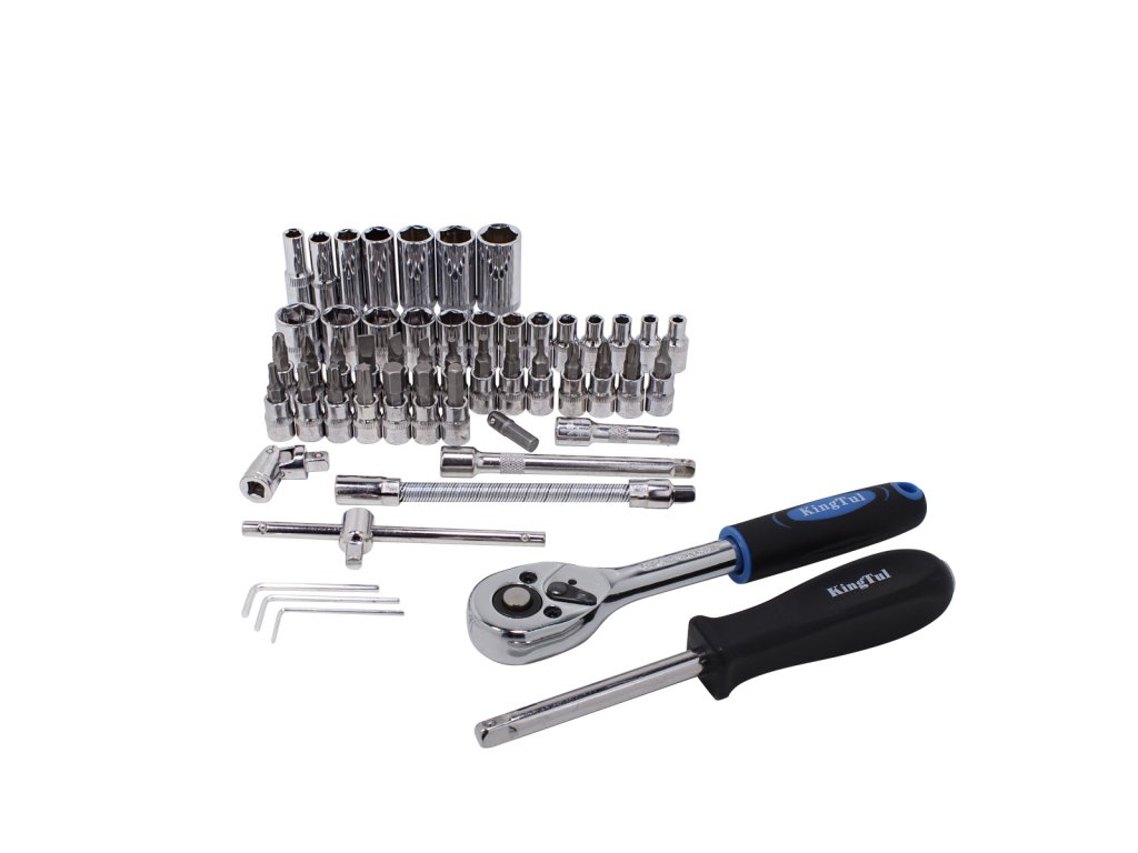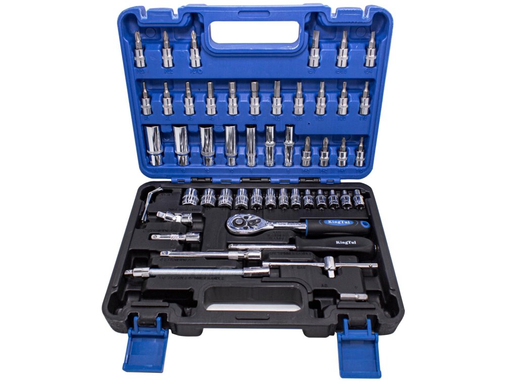 Set uključuje račvu s izdržljivim mehanizmom račve. Uključuje širok raspon nasadnih ključeva (veličine 4-14 mm) i nasadnih ključeva za svjećice, nastavke odvijača (ravne, križne, Pozidriv, HEX, Torx). Dopunjuju ga nastavci (uključujući fleksibilne), univerzalni zglob, imbus ključevi, T-ručka i držač bitova.