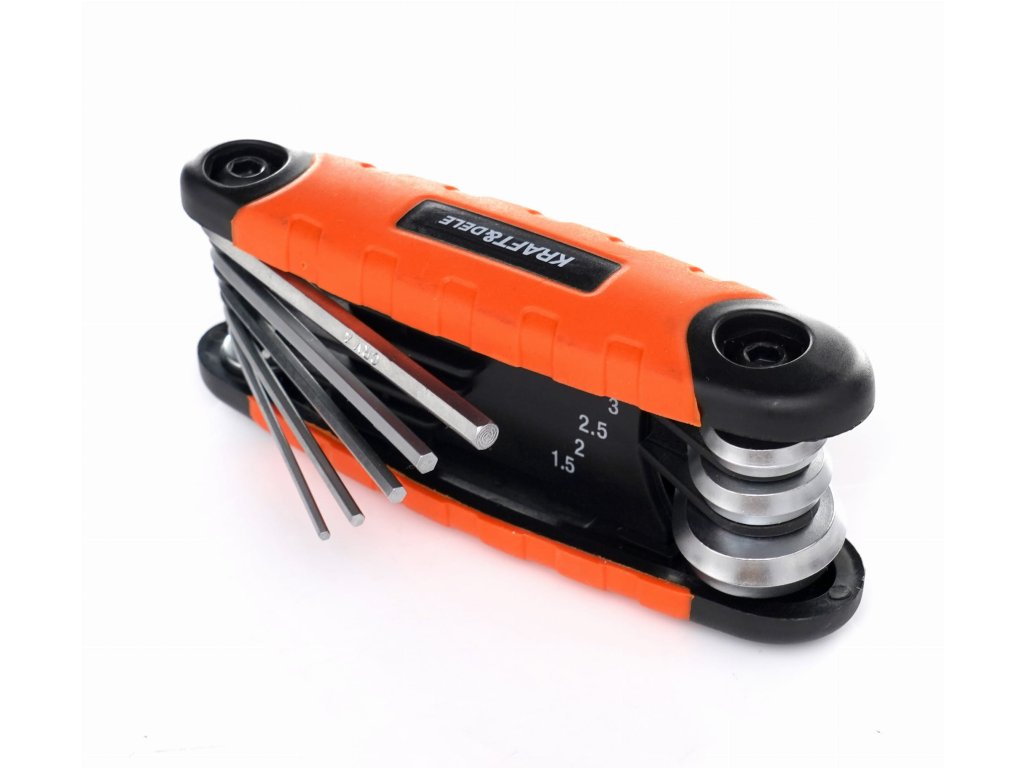 Sastav sklopivih imbus ključeva marke Kraft&Dele, model KD11934, ima poseban kraj s otvorom prilagođenim za rad sa šrafovima tipa HEX.