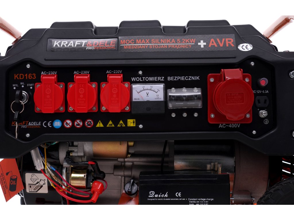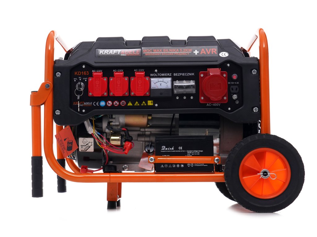 Prijenosni trofazni električni agregat s oznakom KD163 marke Kraft&Dele namijenjen je za generiranje električne energije na trofaznom napajanju 230/400 V (12/230 V/380 V) korištenjem japanskog benzinskog motora OHV, 4-taktni, s snagom 7 HP/5,2 kW i nominalnim izlazom generatora od 3500 W.