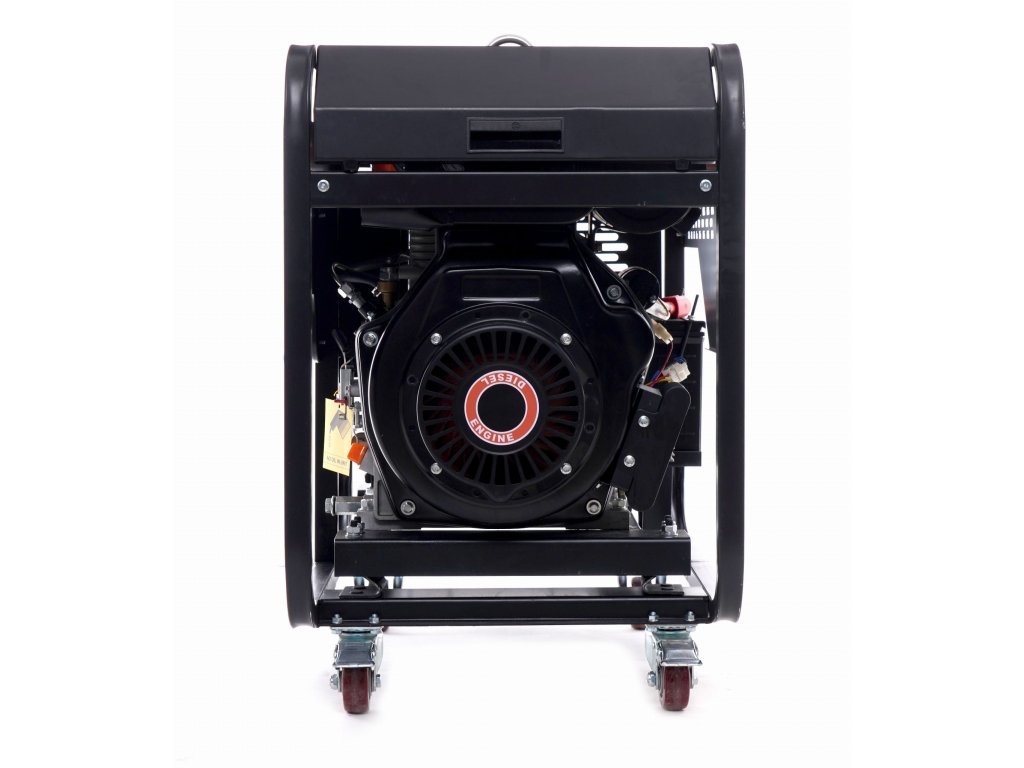 | Specifikacije: • Snaga: 9000W • Gorivo: Dizel • Pokretanje: Ručno + električno • Ugrađeni voltmetar • Dimenzije: 76×52×68 cm • Težina: 150 kg • Bakreni alternator • Automatski regulator napona AVR • Broj utičnica: 3 x 220V • Radni obujam motora: 668 cm3 • Stalna snaga alternatora: 9000W • Nazivna izmjenična snaga: 8,5 kW • Obujam spremnika goriva: 13,5 l • Obujam ulja: 2,1 l • Radna buka: 90 dB |