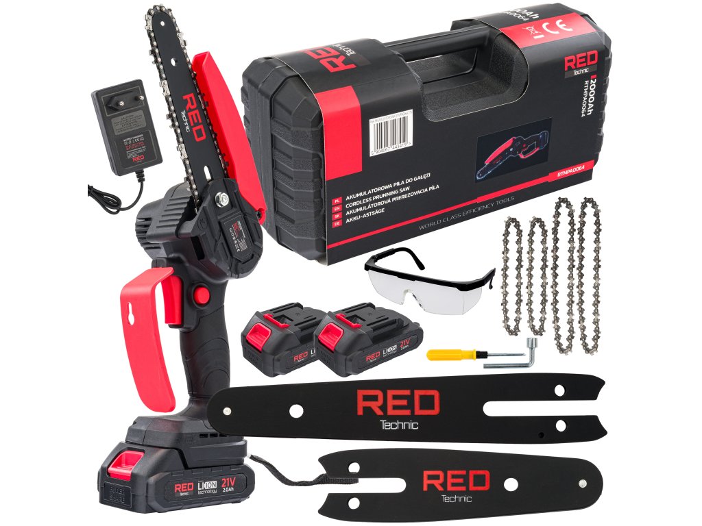 Aku pila RED TECHNIC RTMPA0064 21V | 2x 2Ah | 4x lanac | Vodilica 6" + 4"