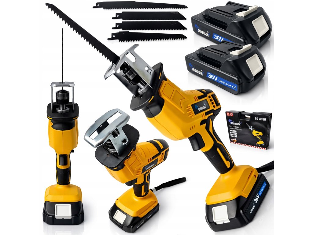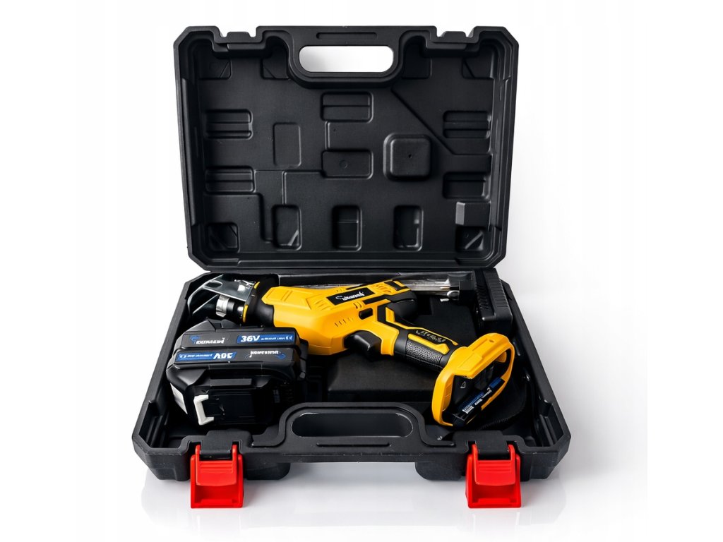Aku sabljasta pila 36V s LED, 2× akumulator 5 Ah, 4 oštrice, kovčeg