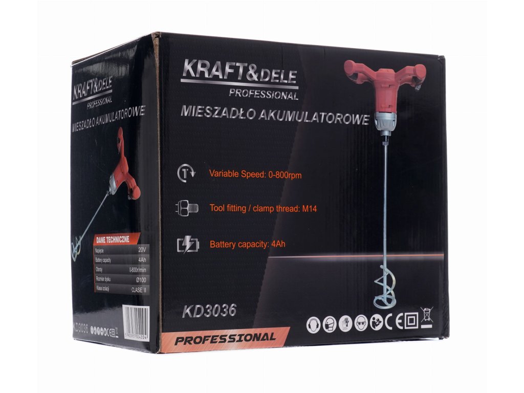 Akumulatorski mješač M14 100 mm 4 Ah KD3036 je idealan za miješanje boja, ljepila, žbuke, omijetenih smjesa, vapnenih malta, cementnih smjesa, epoksidnih smola, nepaljivih kemikalija i slično. Ako planirate rekonstrukciju ili građevinske radove, miješalica je neizostavna oprema. Montaža miješalice vrši se pomoću čvrstog navoja veličine M14, što omogućuje brzo i jednostavno mijenjanje miješalica. Kupnja dodatnih miješalica nije problem jer se radi o uobičajenom i cijenovno dostupnom sustavu pričvršćivanja miješalica.