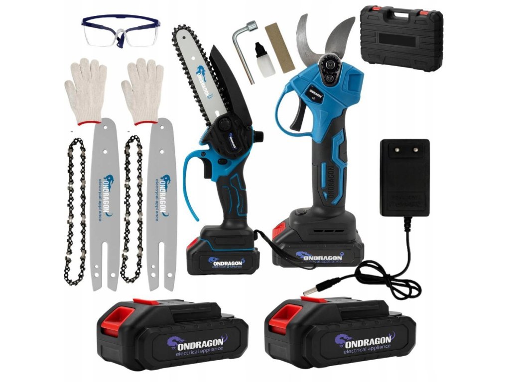 Praktični set alata za svakoga tko brine o vrt ili voćnjak: akumulatorska lančana pila i snažne vrtne škare marke ONDRAGON donose maksimalnu učinkovitost, udobnost i slobodu kretanja bez kabela. Zahvaljujući dvjema baterijama kapaciteta 36V 5Ah možete raditi dulje bez prekida. Set je idealan za podrezivanje grana, sječu manjih stabala ili oblikovanje grmlja. Uključen je bogat pribor i transportni kovčeg – sve što vam treba, odmah vam je pri ruci.