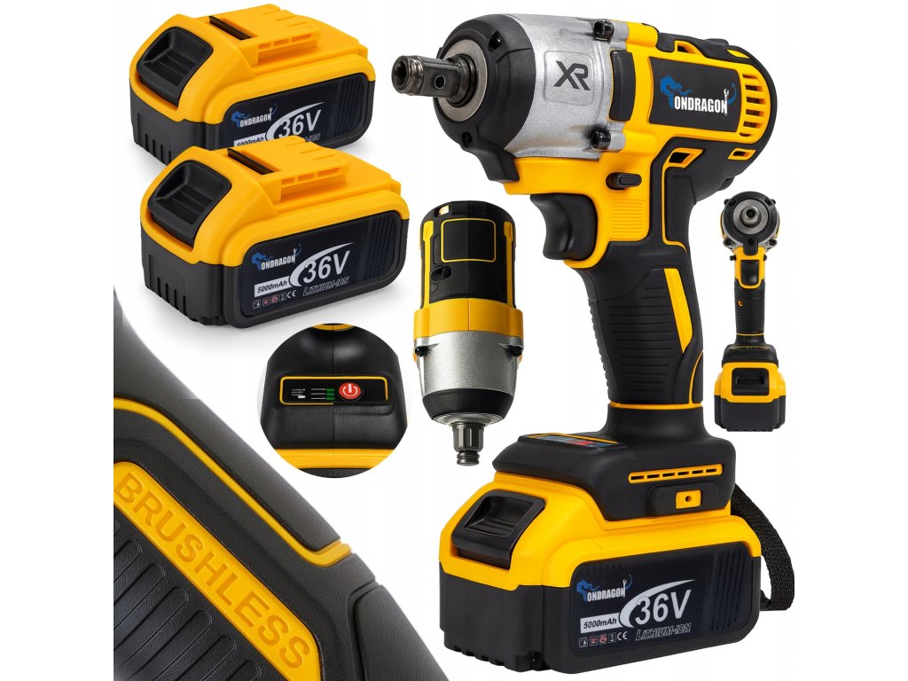 Snažni Ondragon bežični udarni odvijač idealan je pomagač za autoservis, građevinske i kućne radionice. Zahvaljujući visokom okretnom momentu od 380 Nm, lako može otpustiti čak i zahrđale vijke i matice. Ključ je opremljen s dvije 36V Li-Ion baterije kapaciteta 5 Ah, što osigurava dug i neprekidan rad bez potrebe za čekanjem punjenja. Kompaktni dizajn, mala težina i LED osvjetljenje omogućuju praktičnu upotrebu čak i na teško dostupnim i slabo osvijetljenim mjestima.