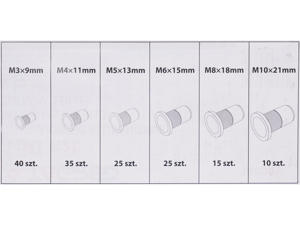 Aluminijske zakivne matice M3 M4 M5 M6 M8 M10 150 kom.