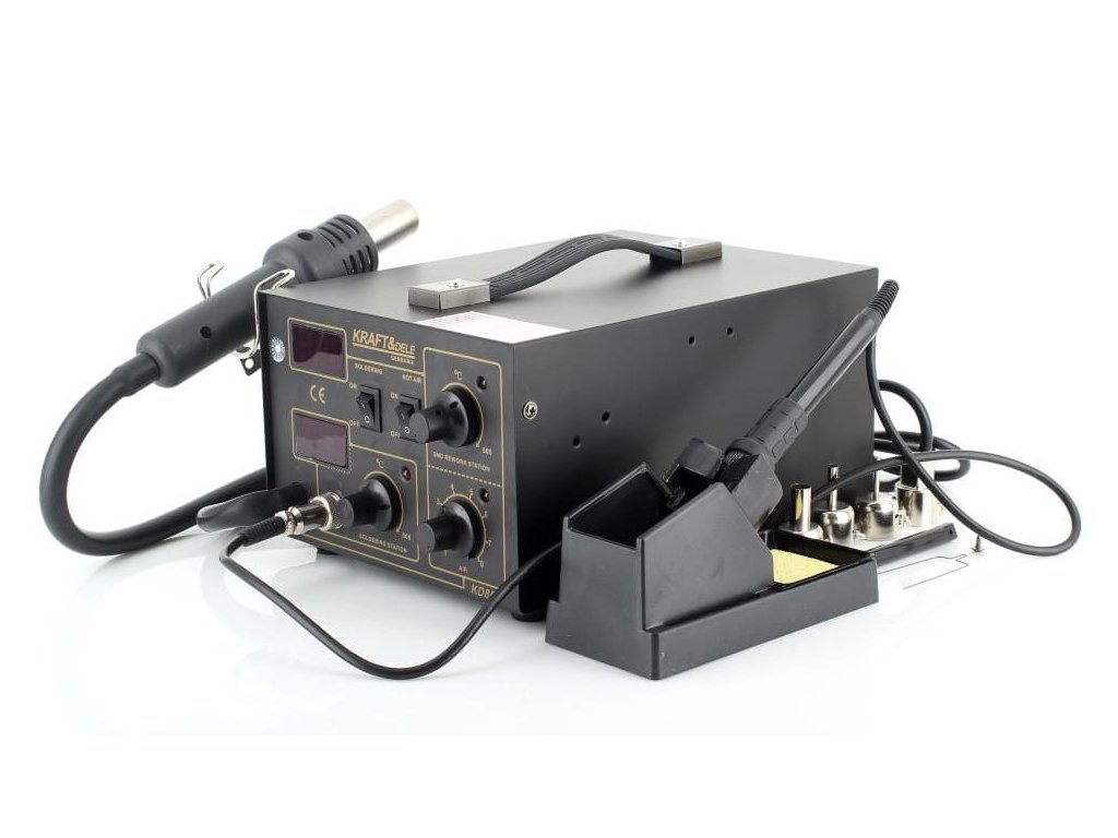Specifikacije: • 2 neovisna operacijska pojačala • ESD-siguran sustav za antistatično lemljenje • 4 mlaznice za zavarivanje različitih veličina • Funkcija lemljenja • Usisavanje lemiva • Zavarivanje • Funkcija bezolovnatog lemljenja (lead free) |