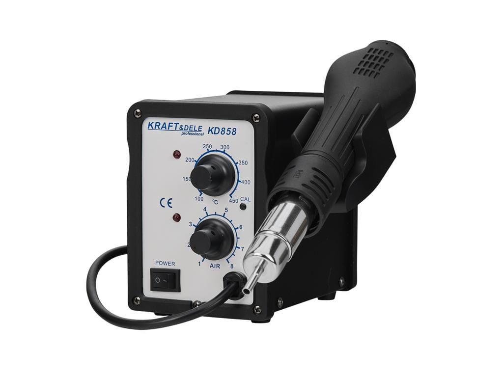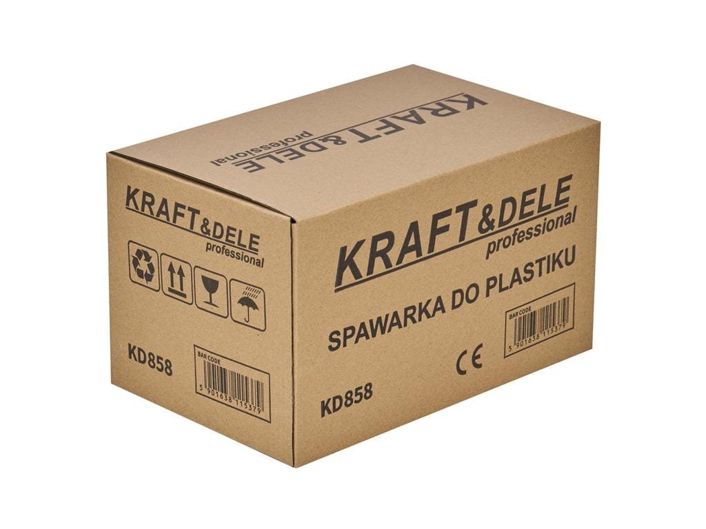 Aparat za zavarivanje plastike 2u1 s 4 mlaznicama KD858 marke Kraft&Dele je vrlo koristan uređaj za sve koji trebaju brzo spojiti plastične dijelove. S ovim uređajem imate glatku regulaciju temperature vrha te glatku regulaciju snage i temperature ispušnog zraka. Opremljen je sustavom automatskog hlađenja nakon završetka rada, što značajno produžuje vijek trajanja grijaćeg tijela. Uređaj ima LED zaslon koji prikazuje temperaturu vrućeg zraka. Regulacija temperature i snage provodi se pomoću okretnih gumba.