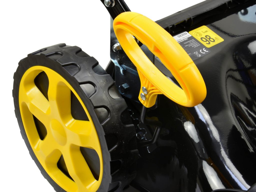 Benzinska kosilica s motorom, opremljena četverotaktnim motorom marke Briggs & Stratton iz serije 500E zapremine 140 cm³. Motor 500E serije je kompaktna, lagana i lako upravljiva jedinica – odlikuje se manjim vibracijama, tišim radom i poboljšanom ergonomijom.