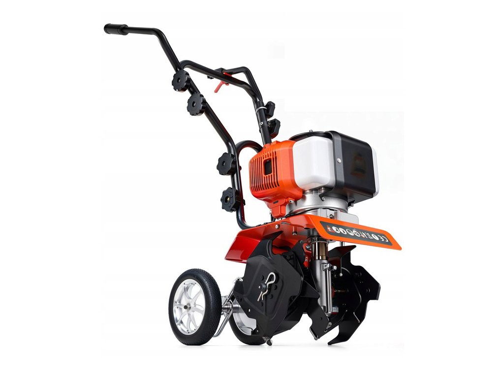 Robusna konstrukcija, stražnja kotačića za lakši transport i ergonomska kontrola osiguravaju udobnu i sigurnu upotrebu. Kultivator je prikladan za cjelogodišnji rad – od proljetne pripreme tla do jesenskog unosa komposta.