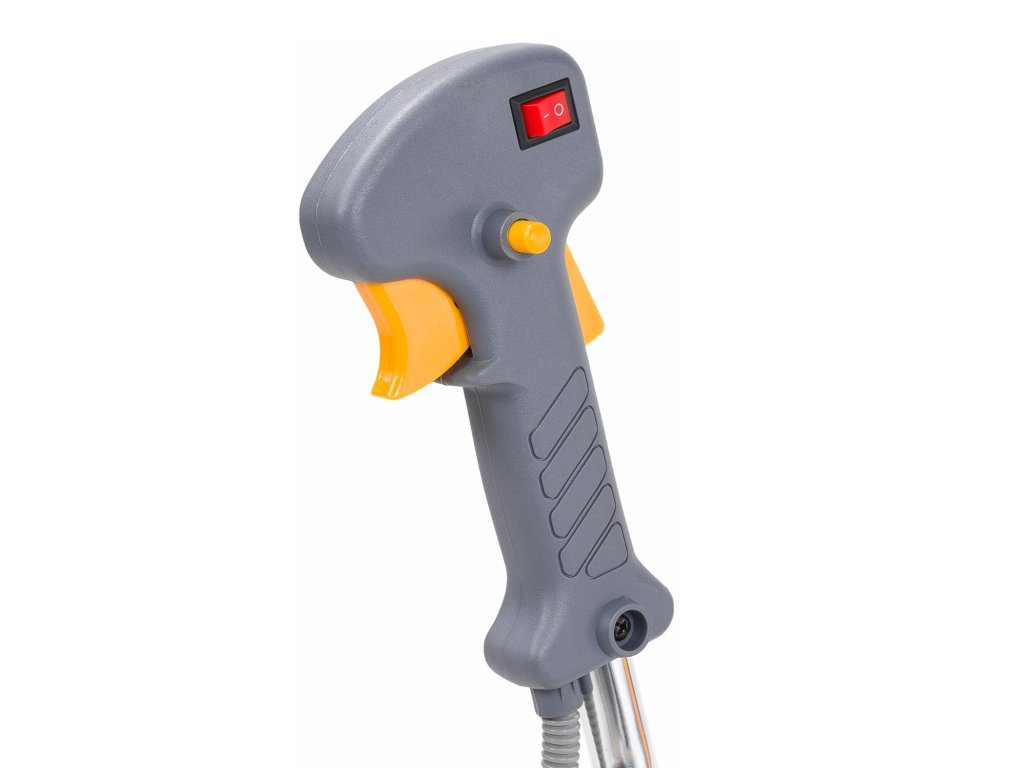 Trimer je opremljen udobnim prekidačem za regulaciju leptiraste lopatice s osiguračem protiv slučajnog pritiska i prekidačem s funkcijom blokiranja okretaja.
