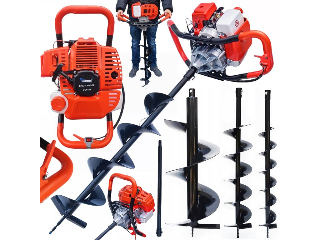 Benzinska zemna vrtalica s snagom 5,2 kW idealan je pomagalo za vrtanje rupa u tlu prilikom ugradnje stupova, sadnje drveća ili postavljanja kablova. Zahvaljujući tri izmjenjiva svrdla različitih promjera i produžetku od 60 cm, moguće je vrtati do različitih dubina i prilagoditi se specifičnim potrebama. Titanijska prijenosnica i čvrsta čelična svrdla jamče dugovječnost.