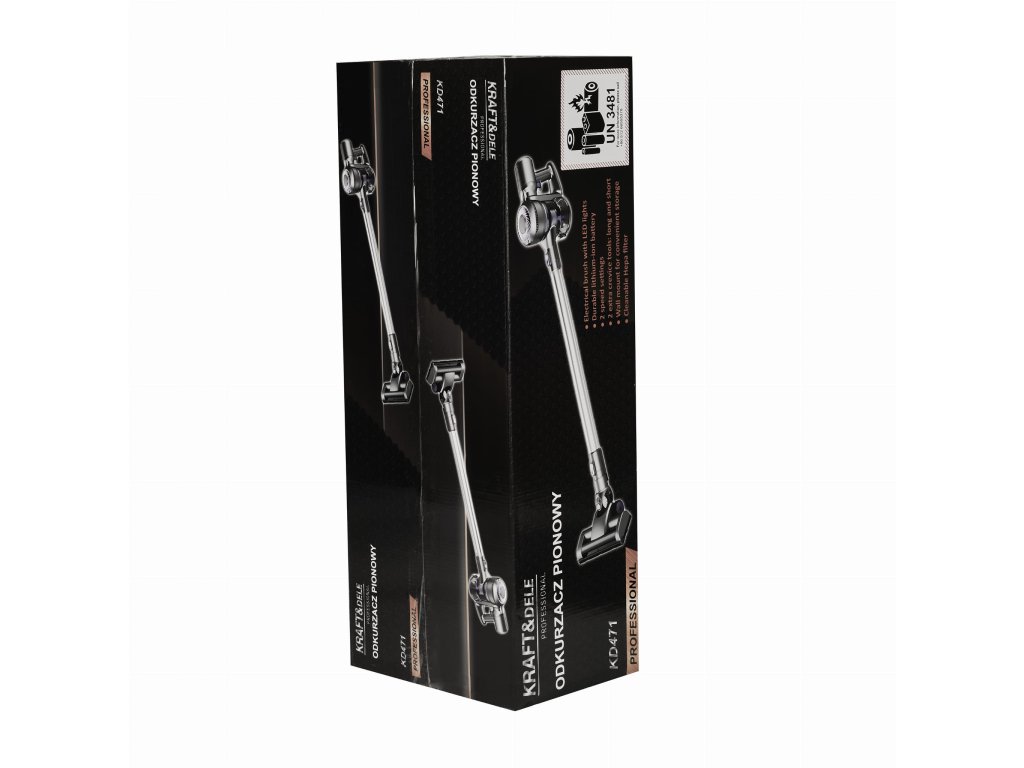Bežični štapni usisavač marke Kraft&Dele, model KD471, idealno je rješenje kada nije moguće priključiti usisavač na električnu mrežu. Dovoljno ga je napuniti i možemo ga bez problema koristiti bilo gdje. U usporedbi s klasičnim usisavačima, naš bežični usisavač povećava komfor rada, kabel se više ne mota oko nogu.