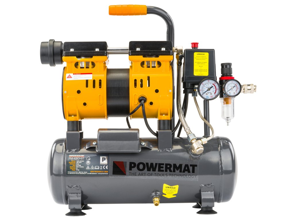 Kompresor PM-KBO-6T poljske marke POWERMAT idealan je za lakirerske aplikacije (manji elementi/površine), puhanje, napuhavanje guma, čišćenje i druge slične radove. Među vrijednim prednostima naših kompresora su niske operativne troškove, multifunkcionalnost i visoka preciznost tijekom rada.