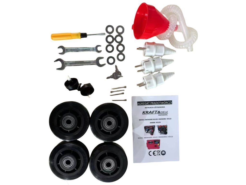 Jednofazna elektrocentrala KD123 marke Kraft&Dele namijenjena je za proizvodnju izmjeničnog napona 220V-230V pomoću snažnog dizelskog motora i generatora snage 7000W. Elektrocentrala je idealna za uporabu na gradilištima ili u pogonima, posvuda gdje je potreban stabilan i snažan izvor električne energije. Motor posjeduje kromirani klip, što joj omogućuje rad vrlo tih i ravnomjeran, uz nisku potrošnju. Gumeni amortizeri i motorne podloške osiguravaju ublažavanje vibracija i smanjenje buke. Uređaj je opremljen električnim starterom, voltmetrom, izlazom od 12V za punjenje akumulatora, regulatorom napona AVR i automatskim ATS prekidačem, koji omogućuje automatski rad elektrocentrale. Održava konstantan izlazni napon bez obzira na opterećenje.