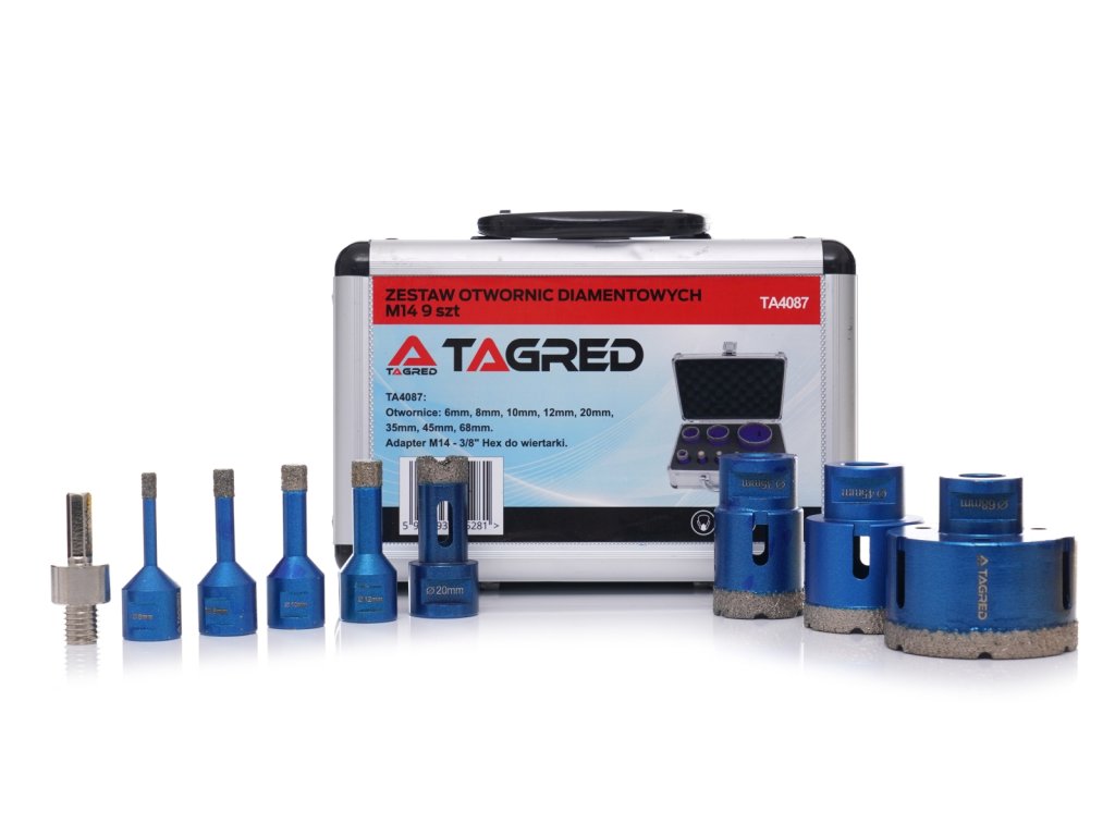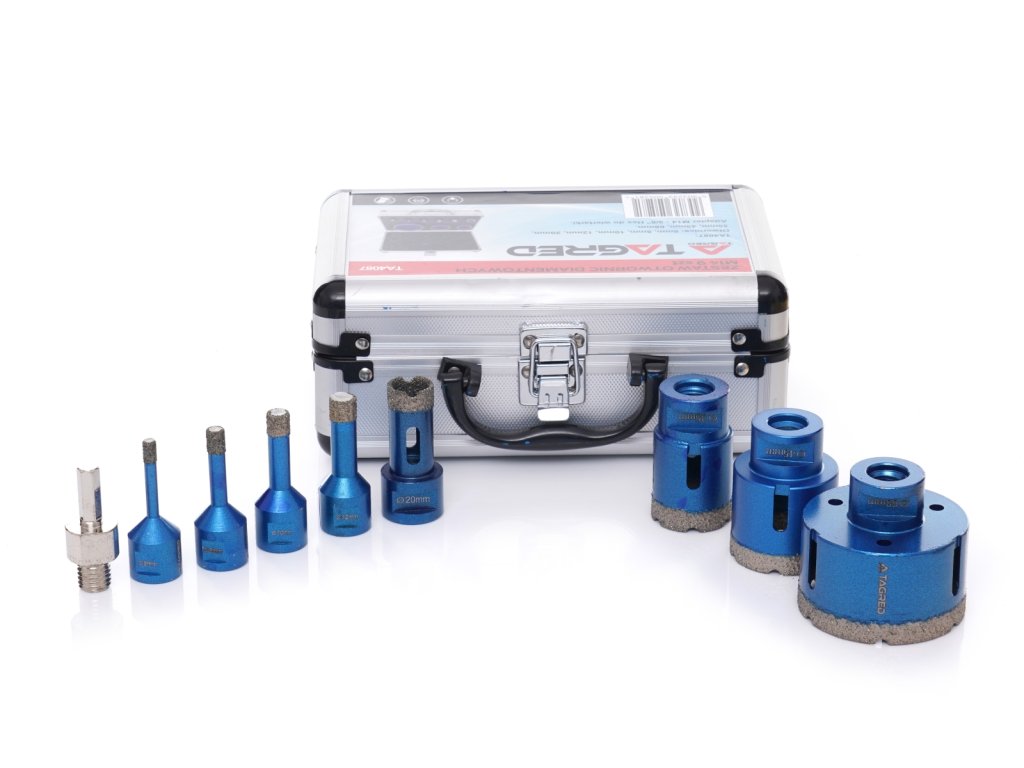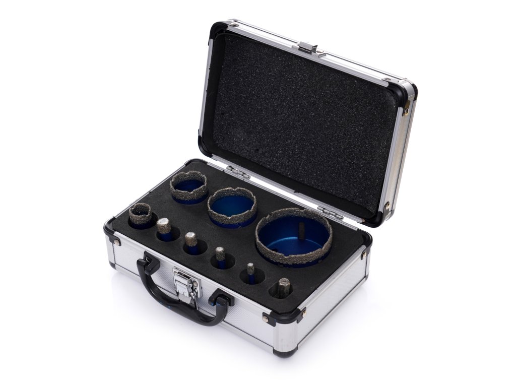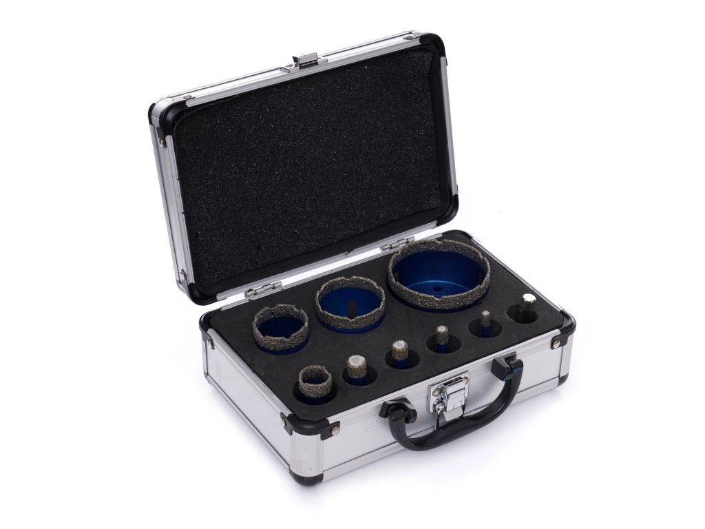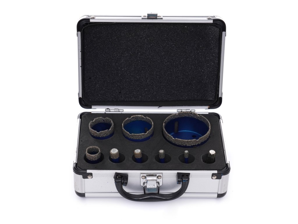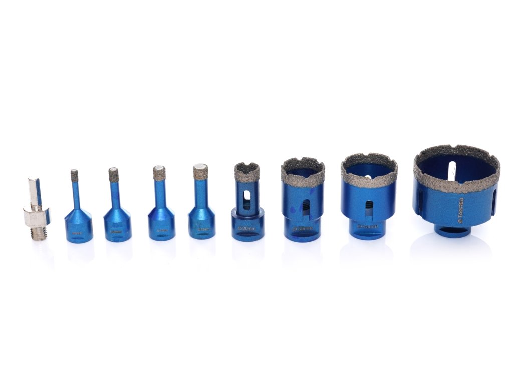 Dijamantne krune za keramiku, kamen, gres, pločice 6, 8, 10, 12, 20, 35, 45, 68mm M14, kovčeg, adapter, 9-dijelna set.