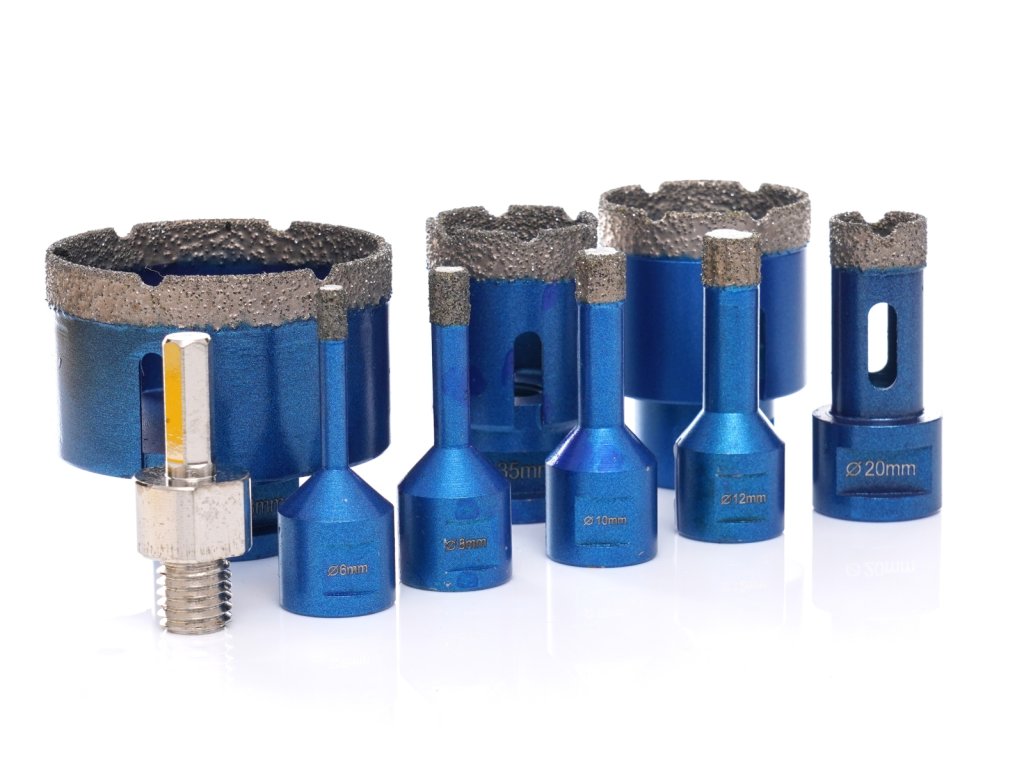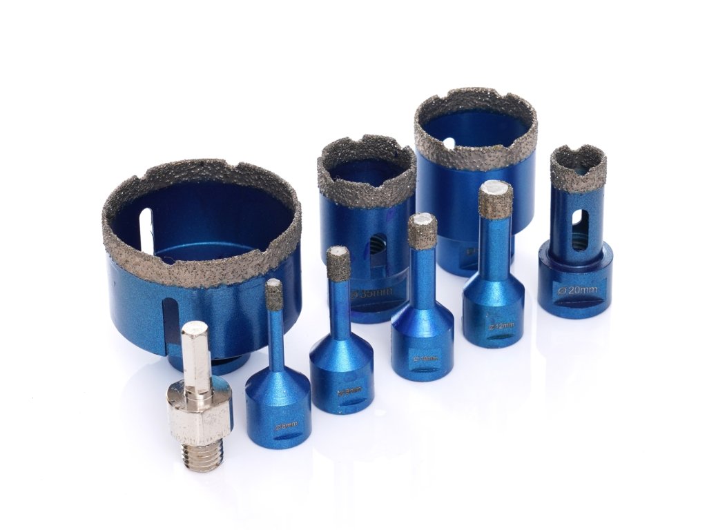 - Dijamantni bušači za kamen, gres, glazuru u veličinama 6, 8, 10, 12, 20, 35, 45 i 68 mm