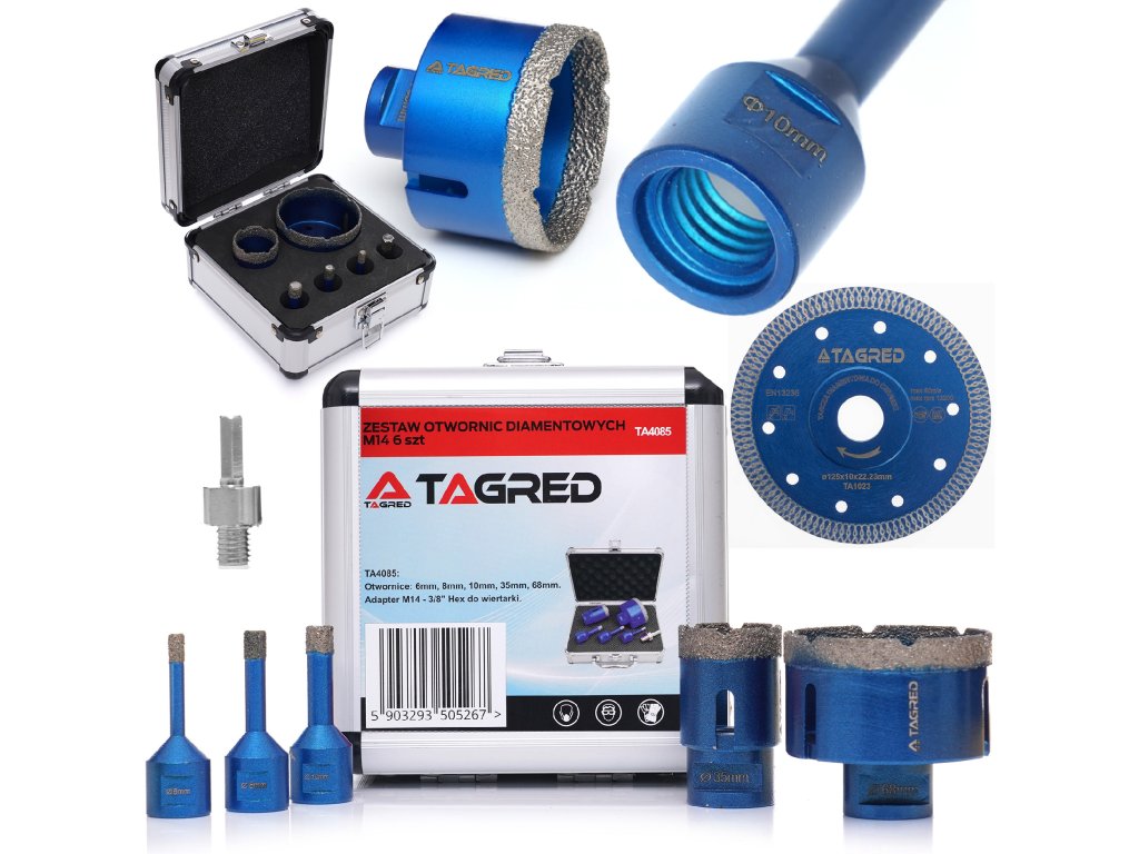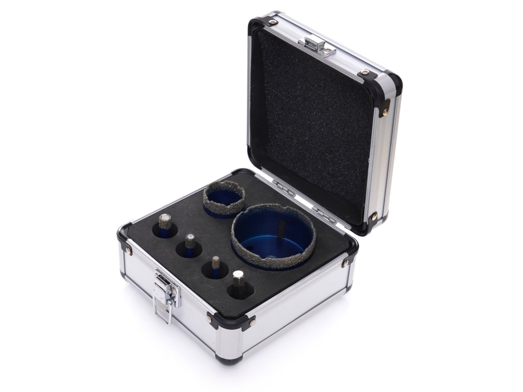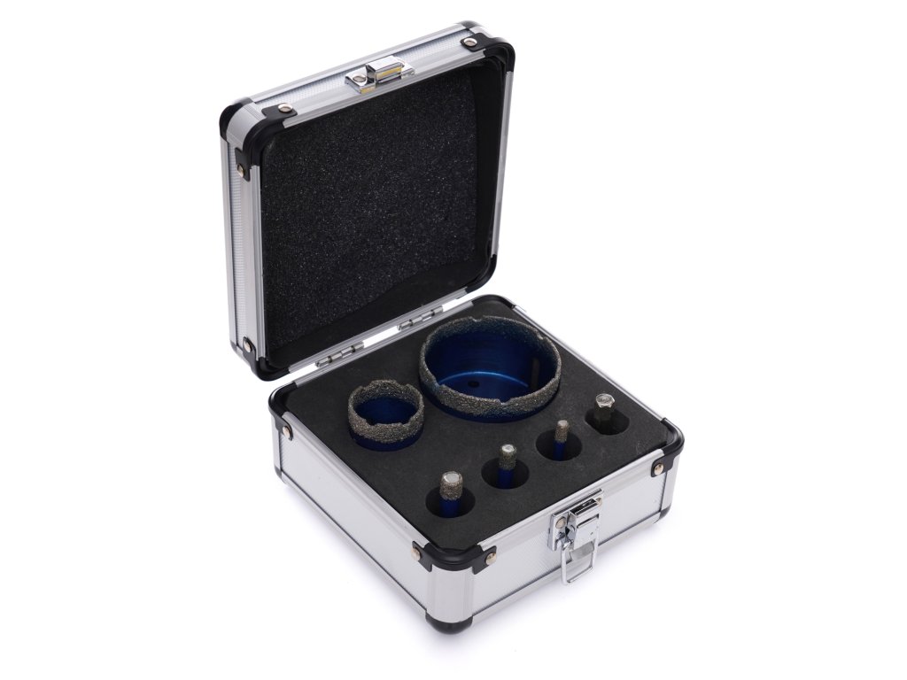 Dijamantne krunice za keramiku, kamen, gres pločice, zidne obloge 6, 8, 10, 35, 68 mm M14, kovčeg, adapter, 6-dijelni set