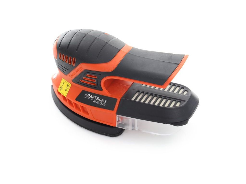 Ekscentrična brusilica Kraft&Dele KD1768 namijenjena je brušenju i poliranju materijala poput metala, drveta, betona, plastike, keramike, kamena i mnogih drugih. Glavna ručka izrađena je od posebnog protukliznog materijala koji olakšava držanje uređaja u ruci. Brusilica je također opremljena dodatnom gornjom ručkom kojom se može pričvrstiti sa tri strane uređaja, blokadu diska i blokadu prekidača.
