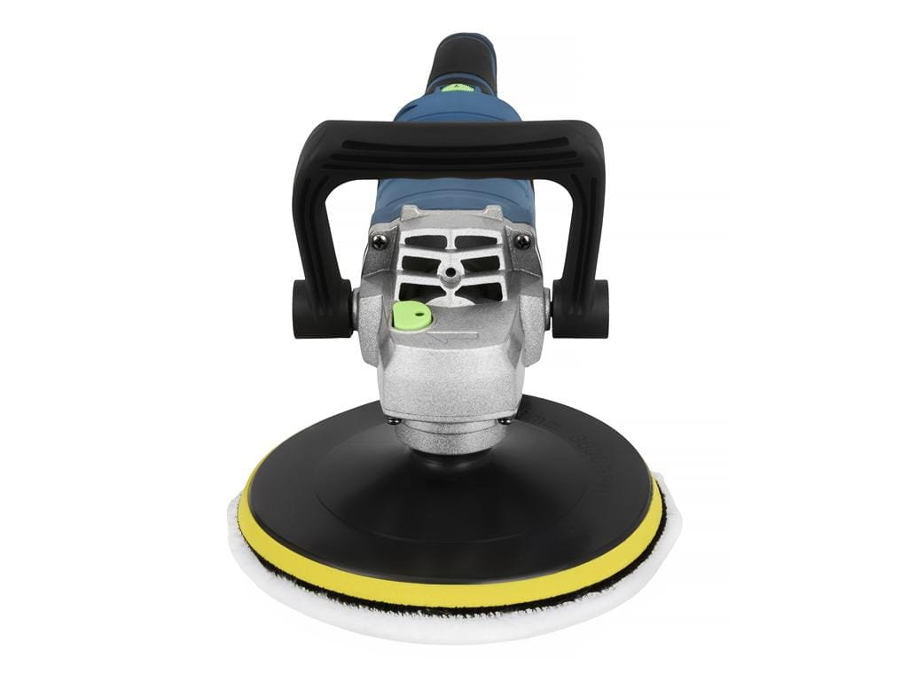 Glavna ručka izrađena je od posebnog protukliznog materijala, što olakšava držanje uređaja. Polirka je vrlo ergonomska i teži samo 3,3 kg.