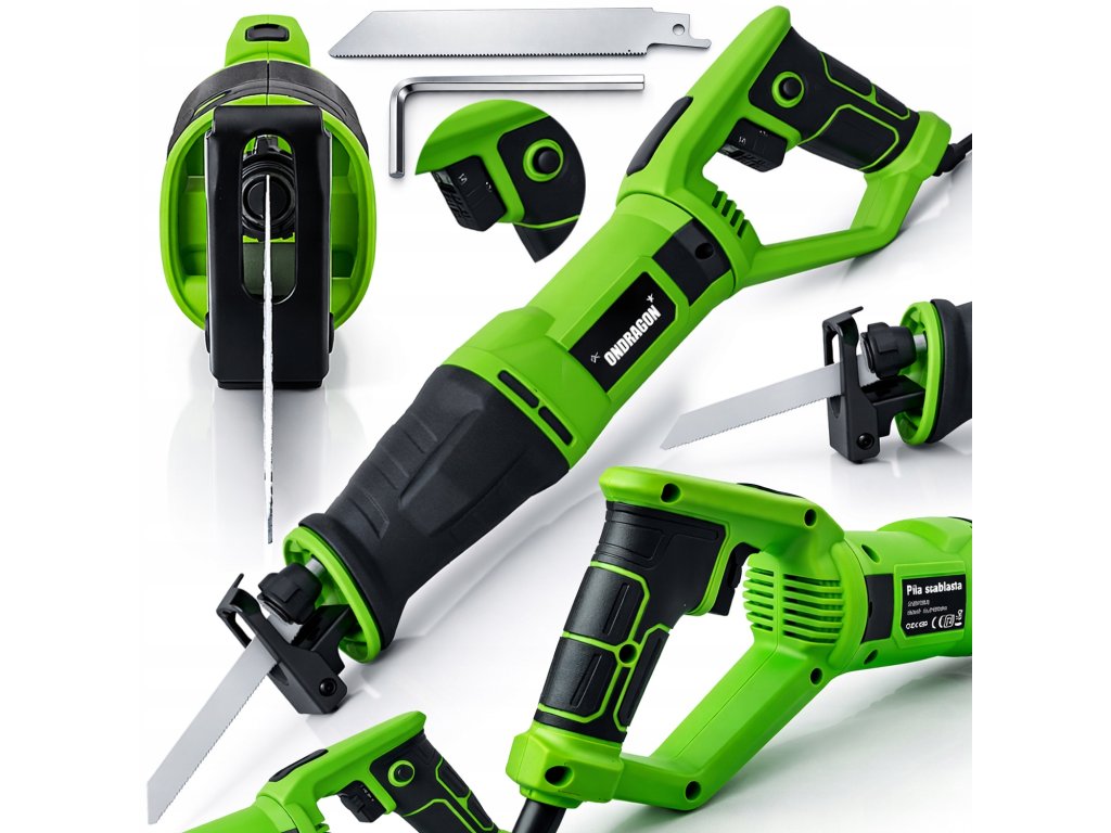 Snažna električna recipročna pila Ondragon snage 2600 W idealan je alat za rezanje drva, metala, plastike i građevinskih materijala. Zahvaljujući snažnom motoru, peterostupanjskoj regulaciji kuta rezanja i SDS sustavu brze izmjene listova bez alata, nosit će se s svakim izazovom. Ergonomska ručka s mogućnošću okretanja za 180° olakšava rad čak i u skučenim prostorima. Prikladna za hobi i zahtjevniju upotrebu kod kuće, na gradilištu ili u radionici.