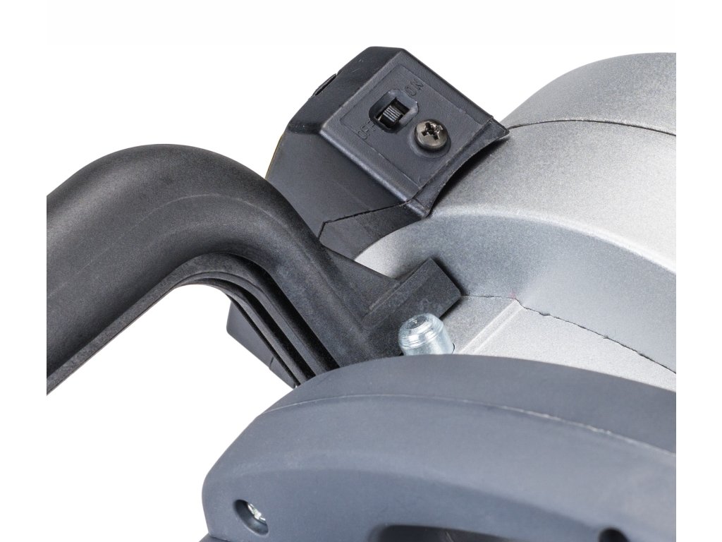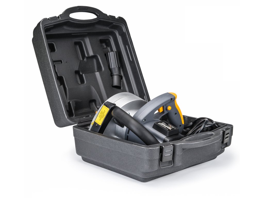 Robusno kućište uređaja doprinosi sigurnosti i udobnosti pri radu. Čvrsta ručka omogućuje precizno vođenje tijekom rezanja, dok integrirani adapter za usis prašine pomaže održati radni prostor čistim.