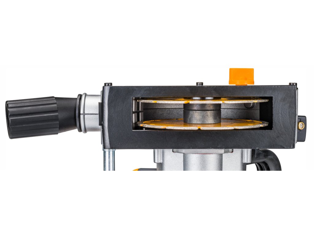 Stroj je opremljen alatom za podešavanje dubine rezanja bez upotrebe dodatnog alata, a gumb za fiksiranje vretena smješten je tako da je lako dostupan palcem za optimalan hvatanje uređaja.