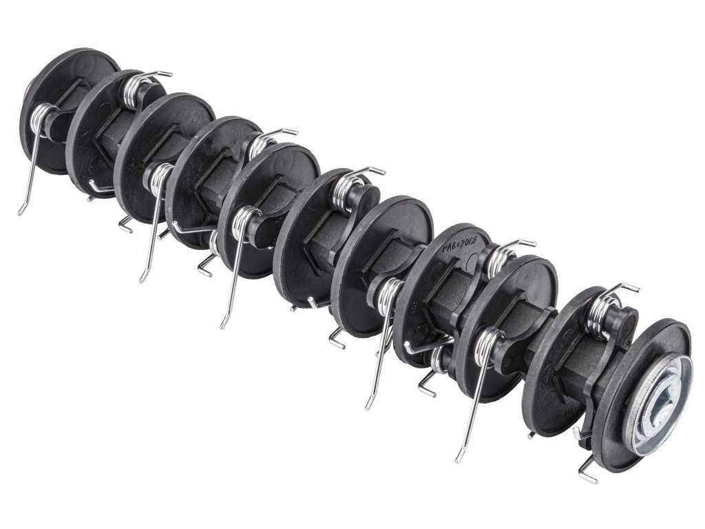 - SUSTAV POSTAVLJANJA RADNIH VALJKA - pričvršćenje radnih valjaka je jednostavno i pouzdano. Zamjena valjaka se vrši lako otpuštanjem dviju vijaka i skidanje stezne stezaljke, čime se nadmašuje pouzdanost bilo kakvih sustava bez alata s brzim mehanizmima.