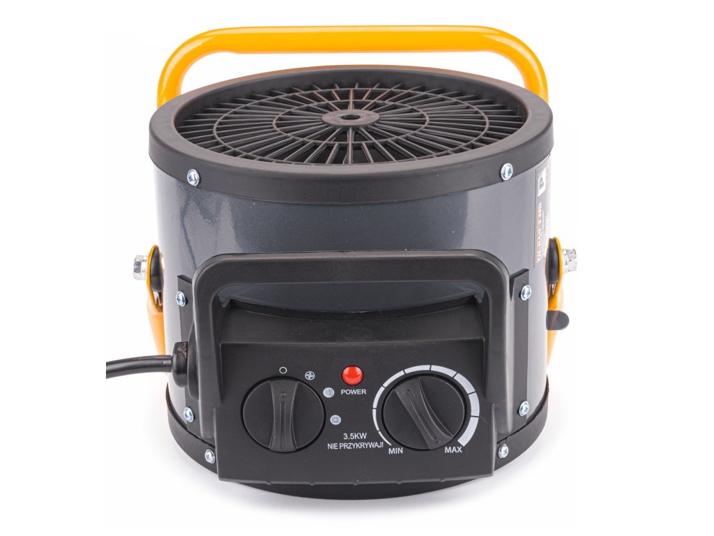 Električni grijači ovog tipa opremljeni su nizom poboljšanja koja značajno utječu na sigurnost korištenja. Sustav štiti motor od pregrijavanja. Osim toga, kompaktna konstrukcija i ručka smještena na gornjem dijelu robustnog kućišta olakšavaju prijenos. Hladan zrak usisava se u uređaj ventilatorom i usmjerava prema izlazu grijača, gdje se zagrijava kvalitetnim grijaćim elementima. Topli zrak izlazi sprijeda.