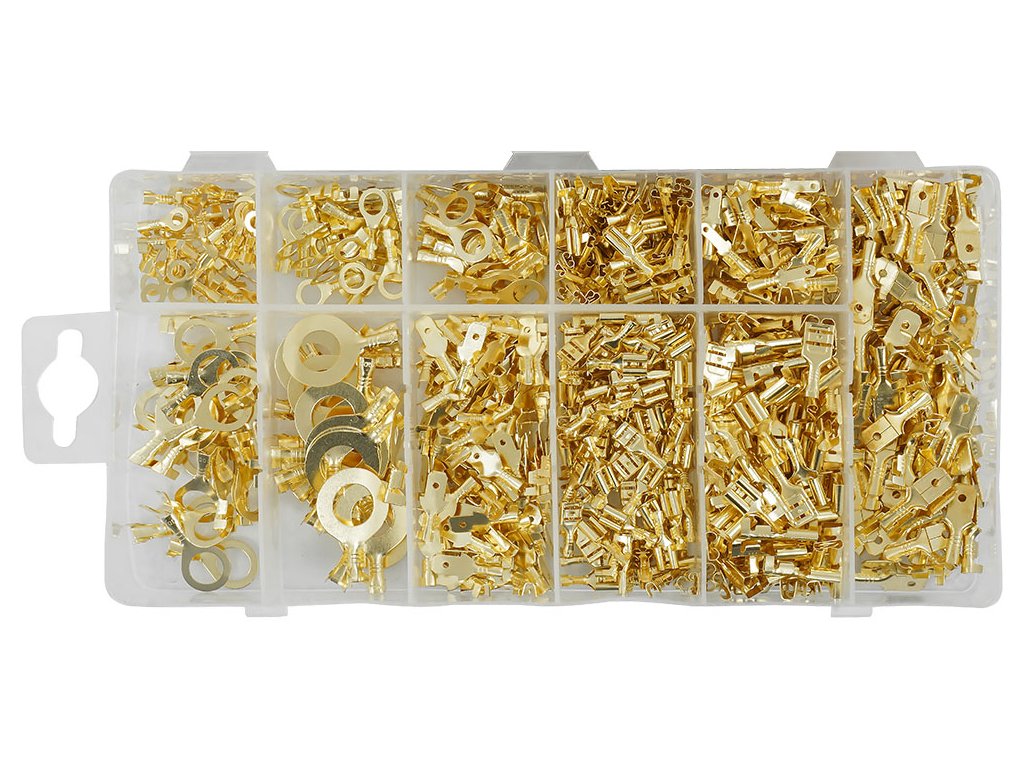 Sada konektora namijenjenih krimpovanju na višežilnim kabelima osigurava trajnu i čvrstu vezu. Upotreba: u osobnim automobilima, kamionima, kombijima, poljoprivrednim strojevima, građevinskim strojevima te svuda gdje se koriste kabelske veze s dodatnim instalacijskim elementima. Materijal - mjedenac.