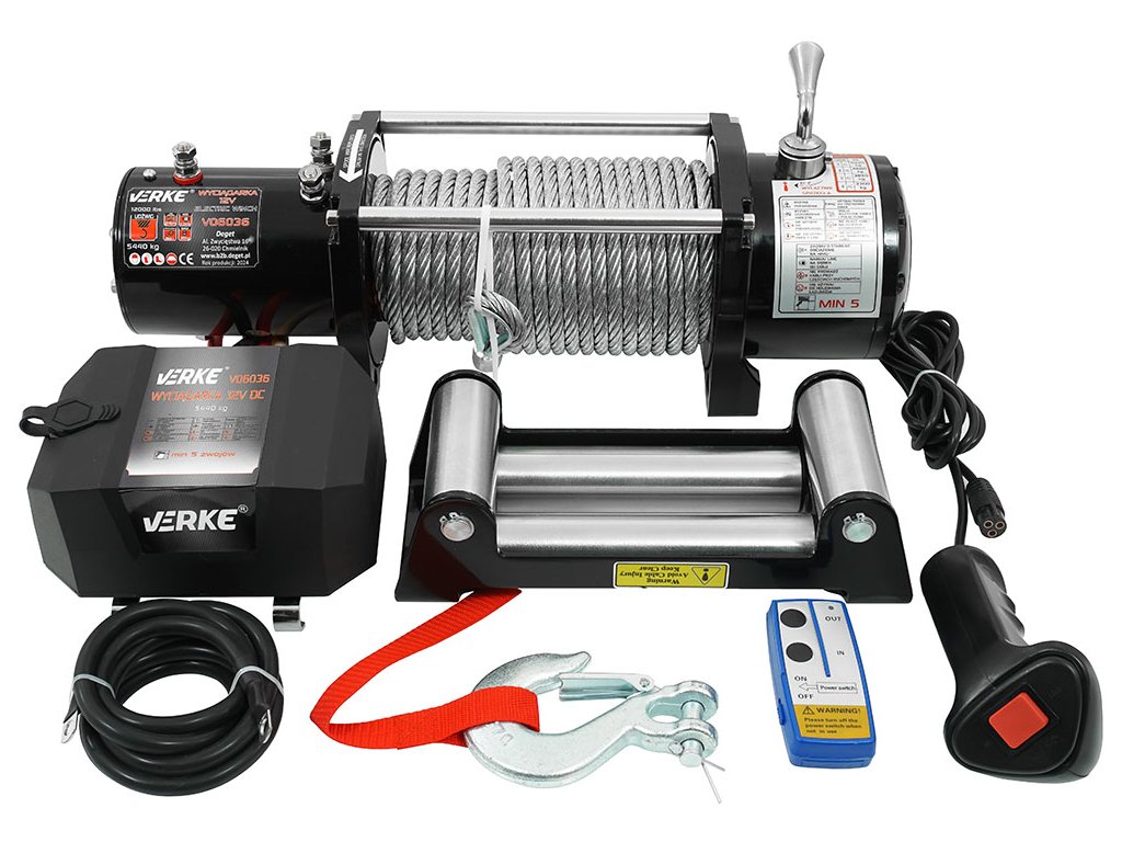 Električni navijak 12V marke VERKE idealan je izbor za korisnike quadova, ATV vozila, terenskih vozila i prikolica. Opremljen je automatskom kočnicom koja odmah zaustavlja navijak u slučaju prekida napajanja. Navijak se može upravljati putem kabelskog ili bežičnog daljinskog upravljača. Kabelski upravljač može se montirati unutar vozila, npr. na upravljaču. Bežični upravljač omogućuje upravljanje uređajem izvan vozila, kako bi se moglo kontrolirati postupak izvlačenja. Ekscentricna spojka za slobodno namatanje omogućava izvlačenje uže bez korištenja električne energije. Automatska kočnica bubnja blokira uže i prestaje vući nakon otpuštanja gumba na prekidaču. Diferencijalni sustav planetarne mjenjač osigurava veliku brzinu uže i sigurno zadržavanje. Automatska kočnica drži teret za maksimalnu sigurnost.