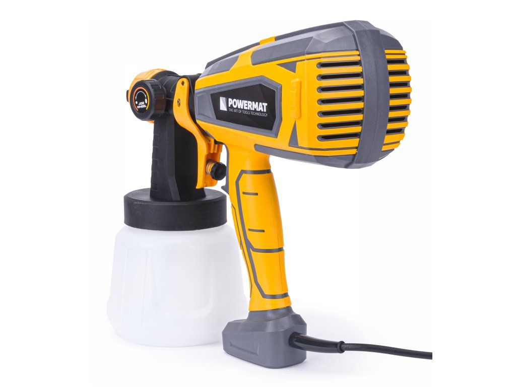 Pištolj HVLP za bojenje marke POWERMAT opremljen je izdržljivim i snažnim motorom snage 600 W, što ga čini neophodnim alatom za kućnu upotrebu.