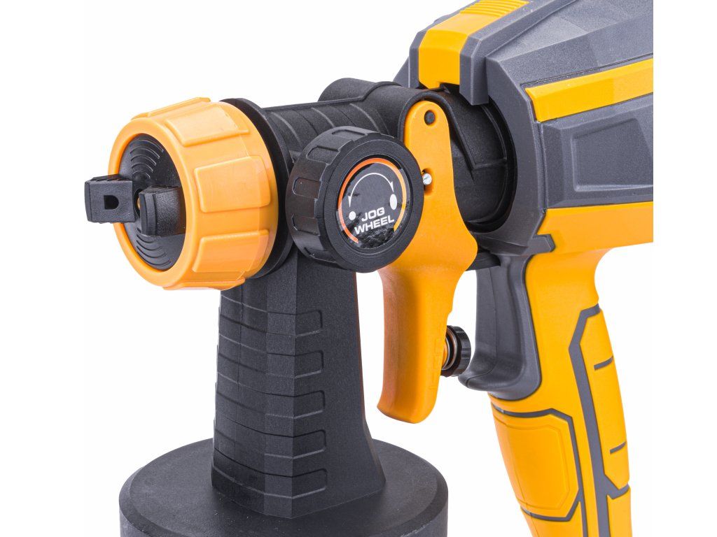Uređaj omogućuje primenu boja s različitim gustoćama, uključujući boje na bazi vode, lakove, primer, završne premaze, mase i temeljne premaze za drvo.