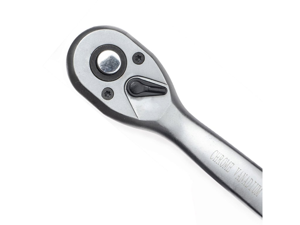 Robusna ratchet glava 1/2" iz premium segmenta izrađena je od krom-vanadijske čelika (CrV), što jamči visoku otpornost i dugotrajnost.