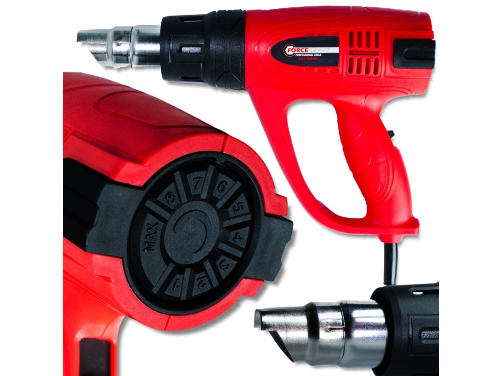 FORCEKRAFT Električni toplinski pištolj 2000 W, 3 razine, 4 mlaznice, 600 °C, za drvo i boju