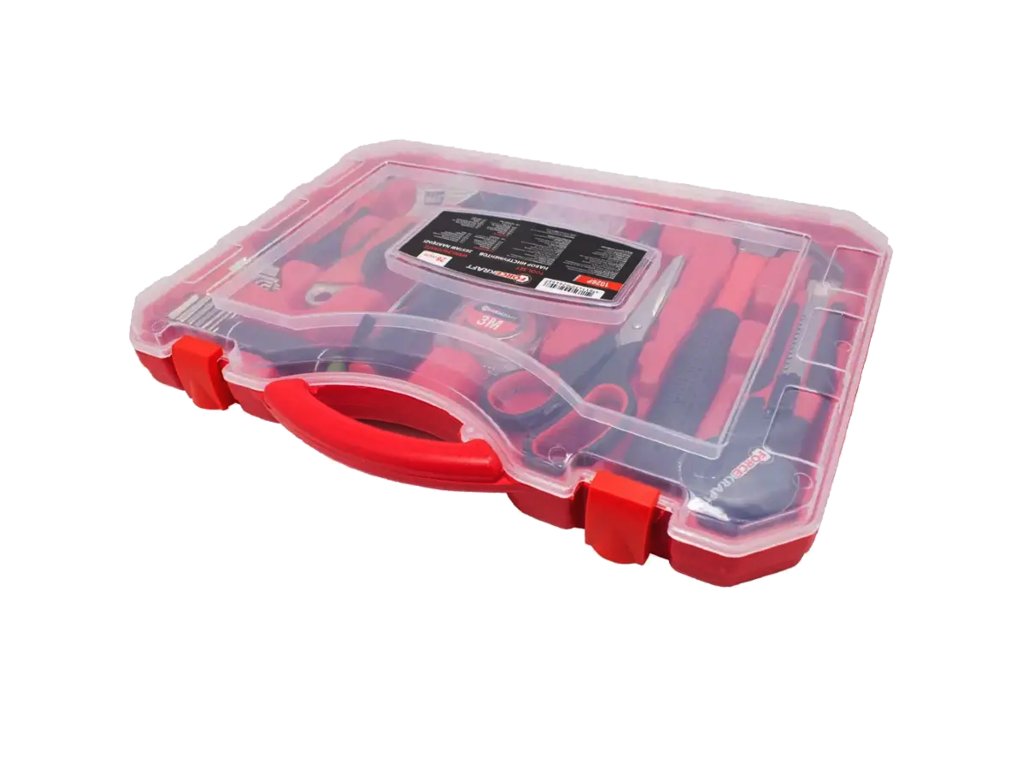 Sav alat je uredno pohranjen u ergonomskom i izdržljivom koferu s kopčom, tako da uvijek možete imati set pri ruci - u automobilu, kod kuće, na gradilištu ili u vrtu.