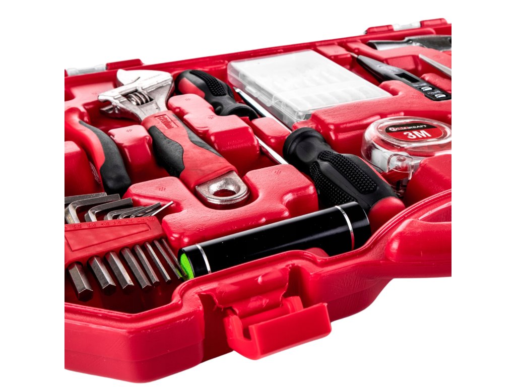 Zahvaljujući ovom koferu, imate sve što vam je potrebno za rad kod kuće, u radionici ili na gradilištu bez potrebe da kupujete svaki alat zasebno.