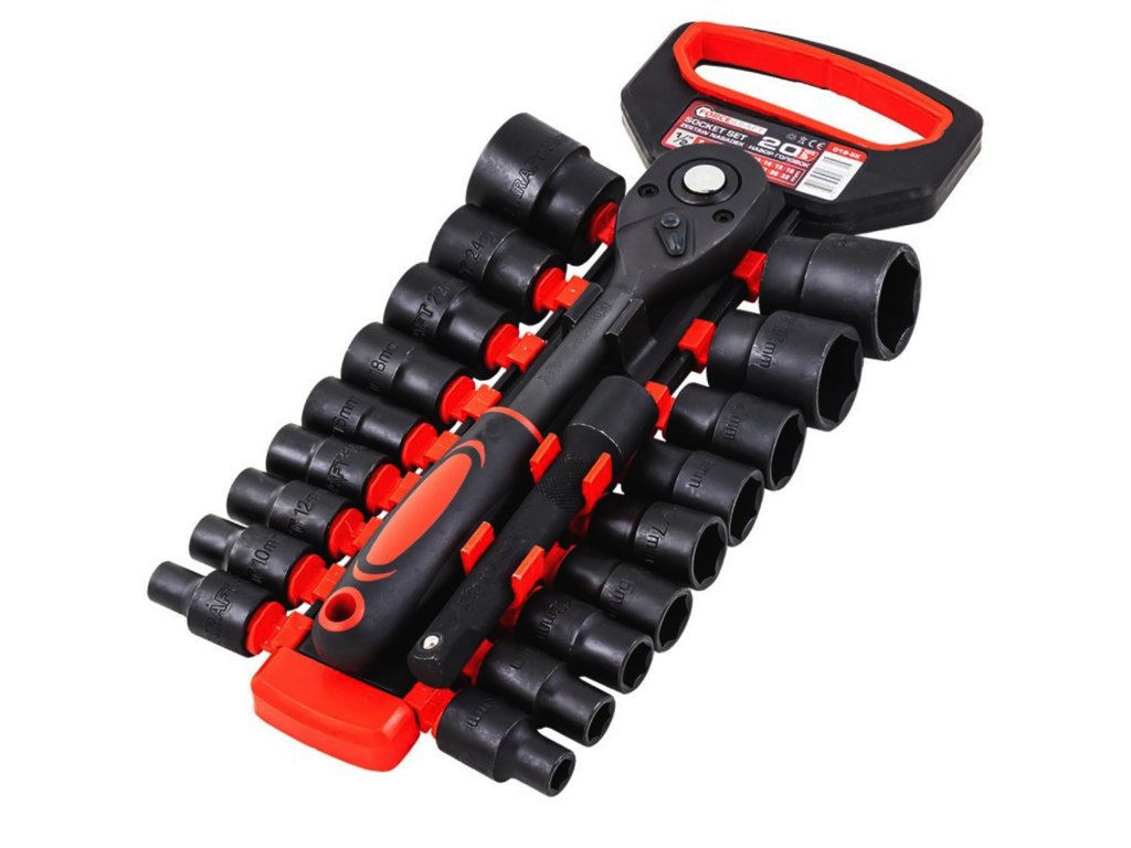 - 18 × šesterokutni nasadni ključevi (1/2"): 8 / 9 / 10 / 11 / 12 / 13 / 14 / 15 / 16 / 17 / 18 / 19 / 21 / 22 / 24 / 27 / 30 / 32 mm