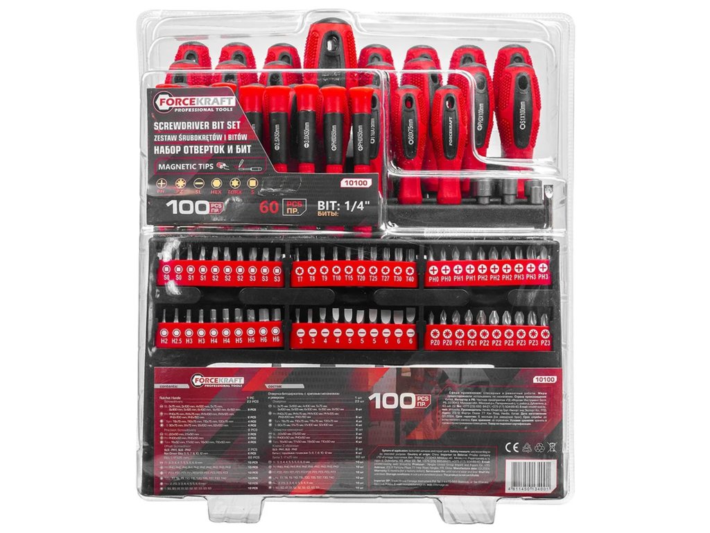 Forcekraft set odvijača i bitova, 100 komada, u stalku