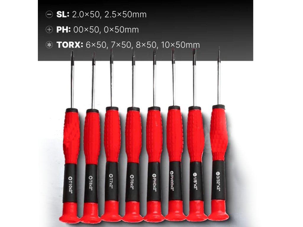 - Torx (T): T6×50, T7×50, T8×50, T10×50