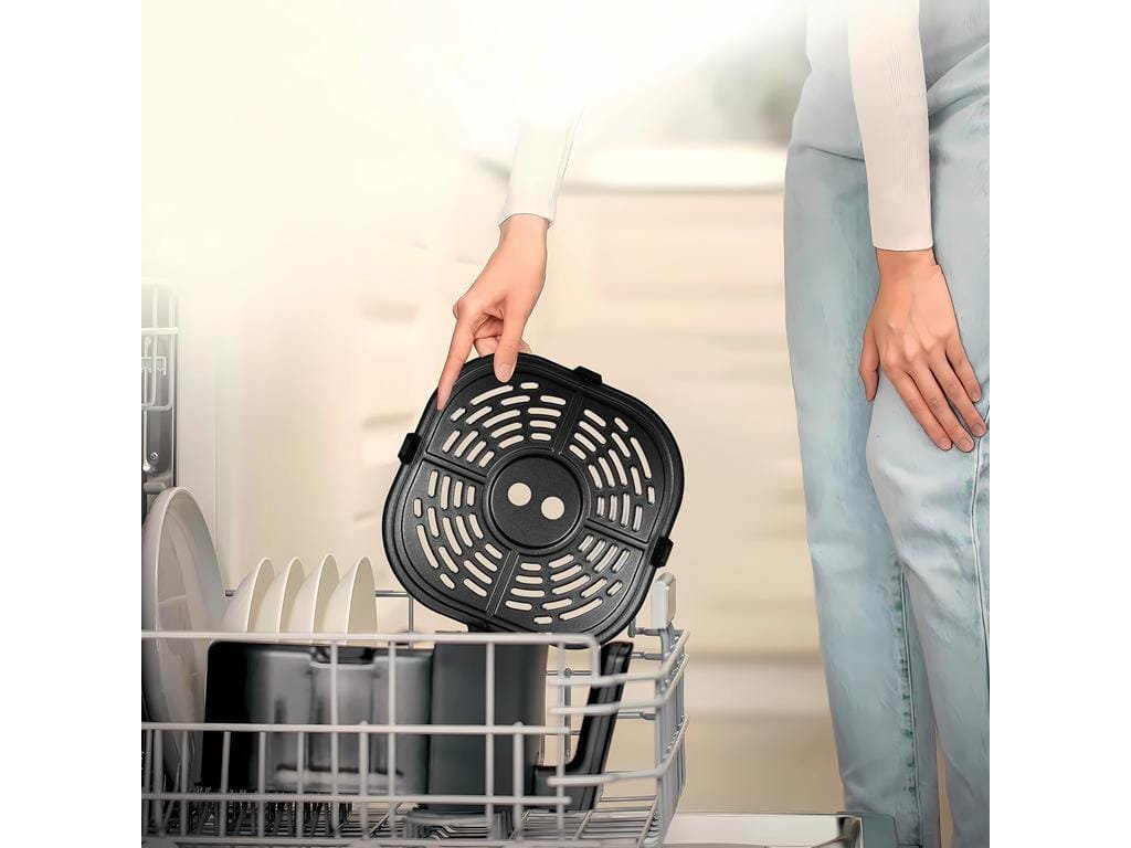 Zahvaljujući tehnologiji 360° cirkulacije vrućeg zraka i ugrađenom gornjem grilu, vaša će jela biti ravnomjerno hrskava izvana i sočna iznutra. Uređaj je idealan za pečenje pomfrita, mesa, povrća i deserata – brzo, zdravo i bez nereda u kuhinji.