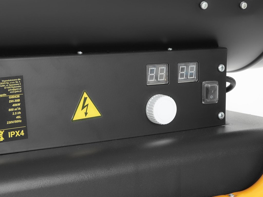 Grijač na ulje s odvodom dimnih plinova 40kW je visoko učinkovito uređaj koje osigurava stalni dotok zagrijanog zraka snage 40 000 W. Idealan za grijanje poluotvorenih i ventiliranih prostora, poput proizvodnih hala, skladišta i slično. Ugrađeni termostat osigurava visoku toplinsku učinkovitost i uštedu goriva, omogućuje podešavanje željene temperature i automatski isključuje grijač kada se ona postigne. Ako temperatura padne, senzor ponovo pokreće grijač.