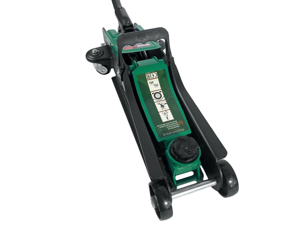 Zahvaljujući dobro dizajniranim kotačima, dizalica se može lako postaviti ispod bilo kojeg dijela vozila. Dizajn kotača znatno olakšava rukovanje, a njihov veći promjer osigurava udoban rad čak i na neravnim površinama.