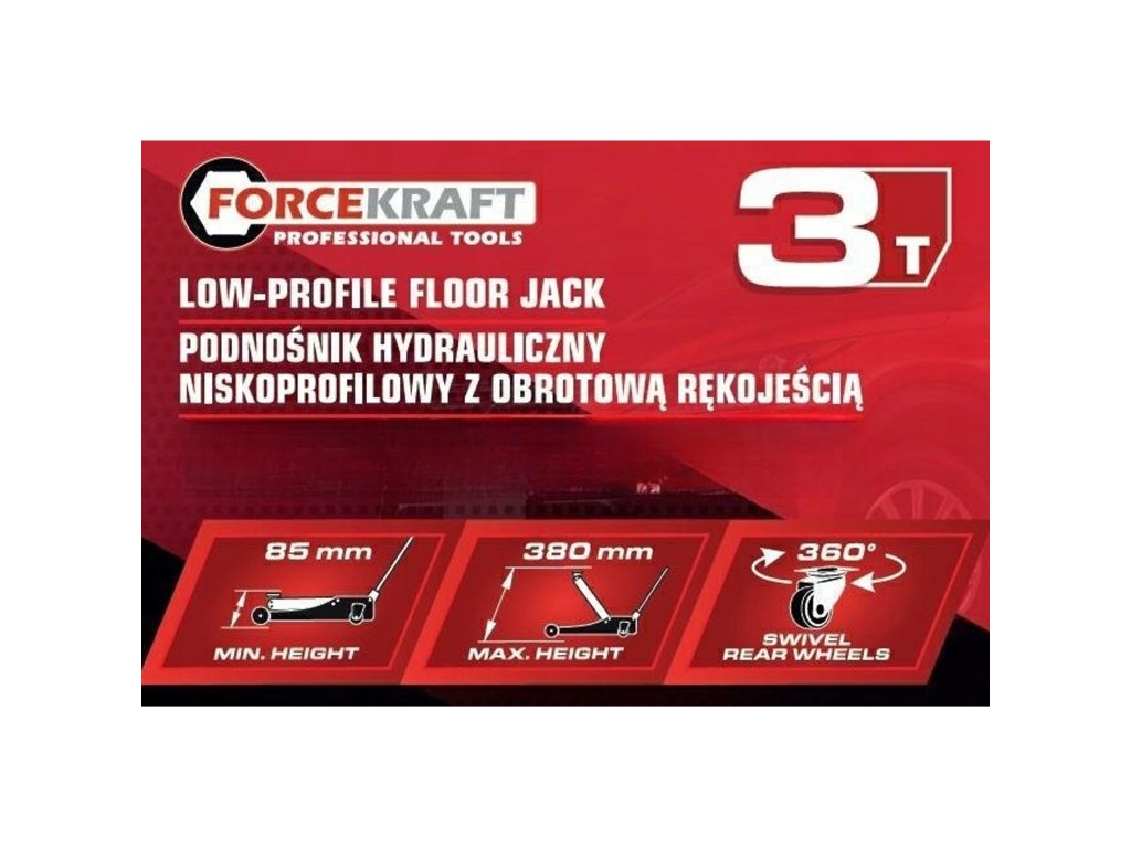Hidraulična niskoprofilna dizalica (žaba) 3 t, točkasta — FORCEKRAFT