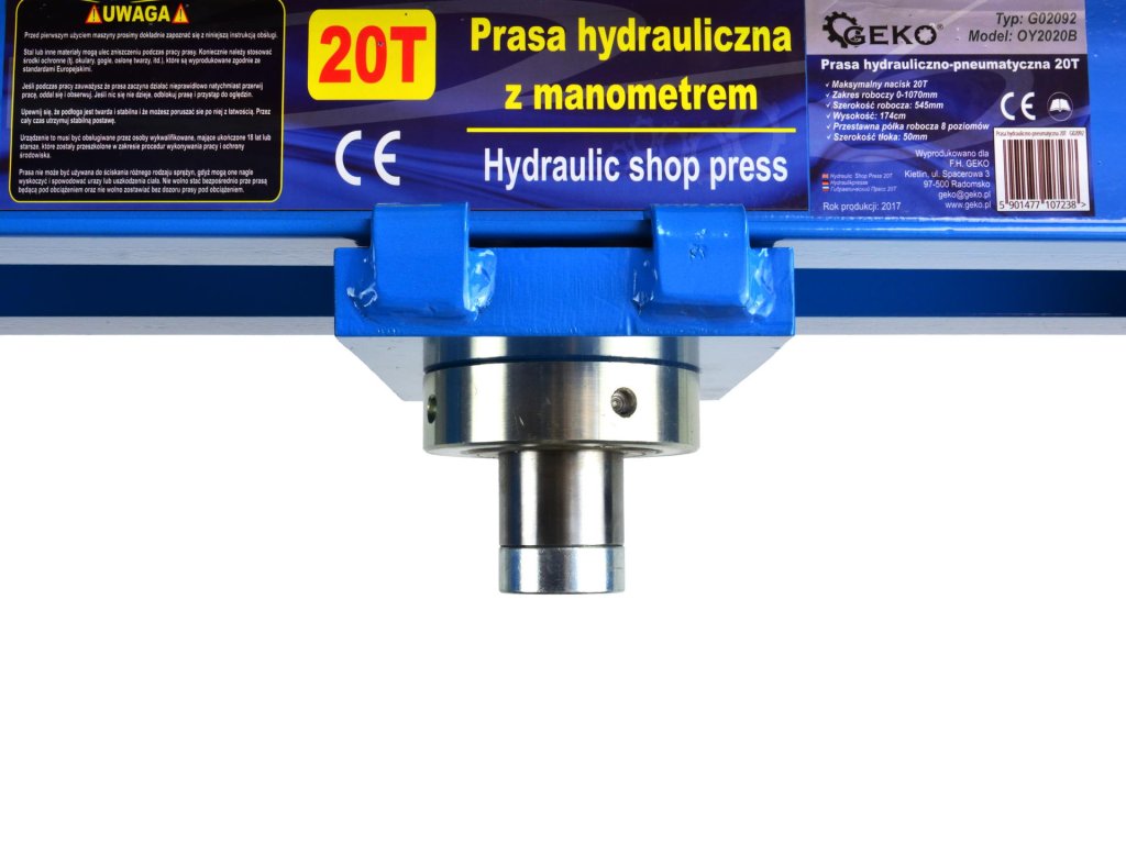 Hidraulična-pneumatska presa 20T s manometrom je neizostavan alat za radione, servisne centre, industrijska poduzeća te poljoprivredu. Ova presa proizvedena od strane poljske tvrtke GEKO pruža pritisak od 20T i opremljena je manometrom za preciznu kontrolu. Dodatno ojačan okvir osigurava visoku otpornost na mehanička oštećenja.