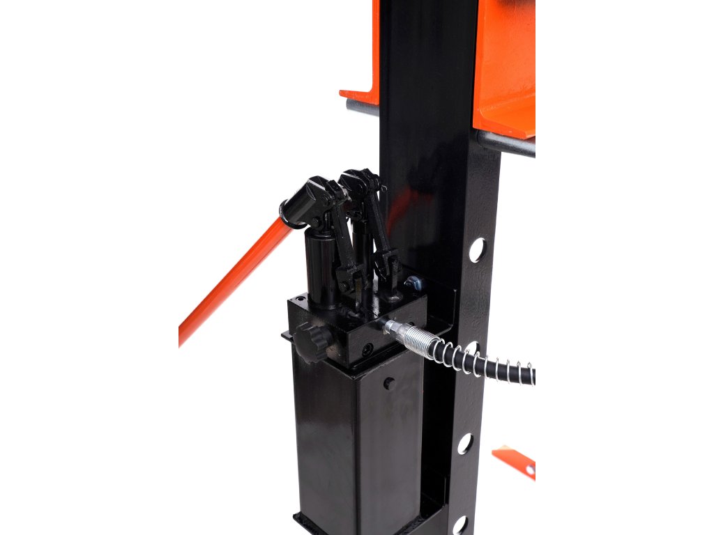 Hydraulična presa označena KD318 marke Kraft & Dele. Zahvaljujući tlaku od 20 t i čvrstoj konstrukciji od konstrukcijskog čelika, podnosi i najzahtjevnije zadatke u vašem radionici.