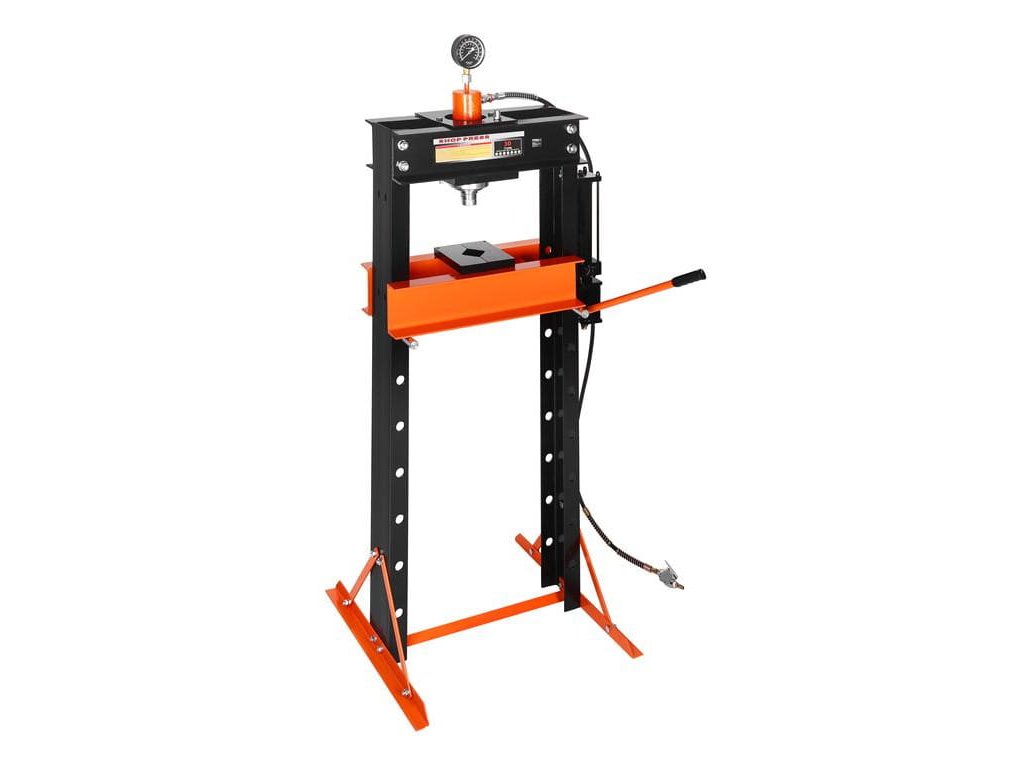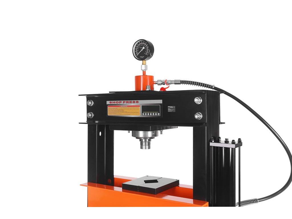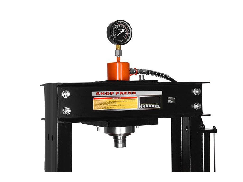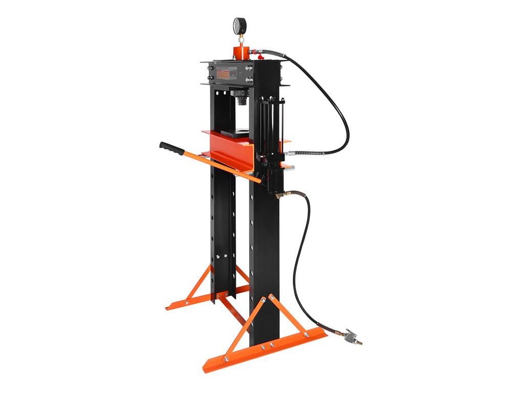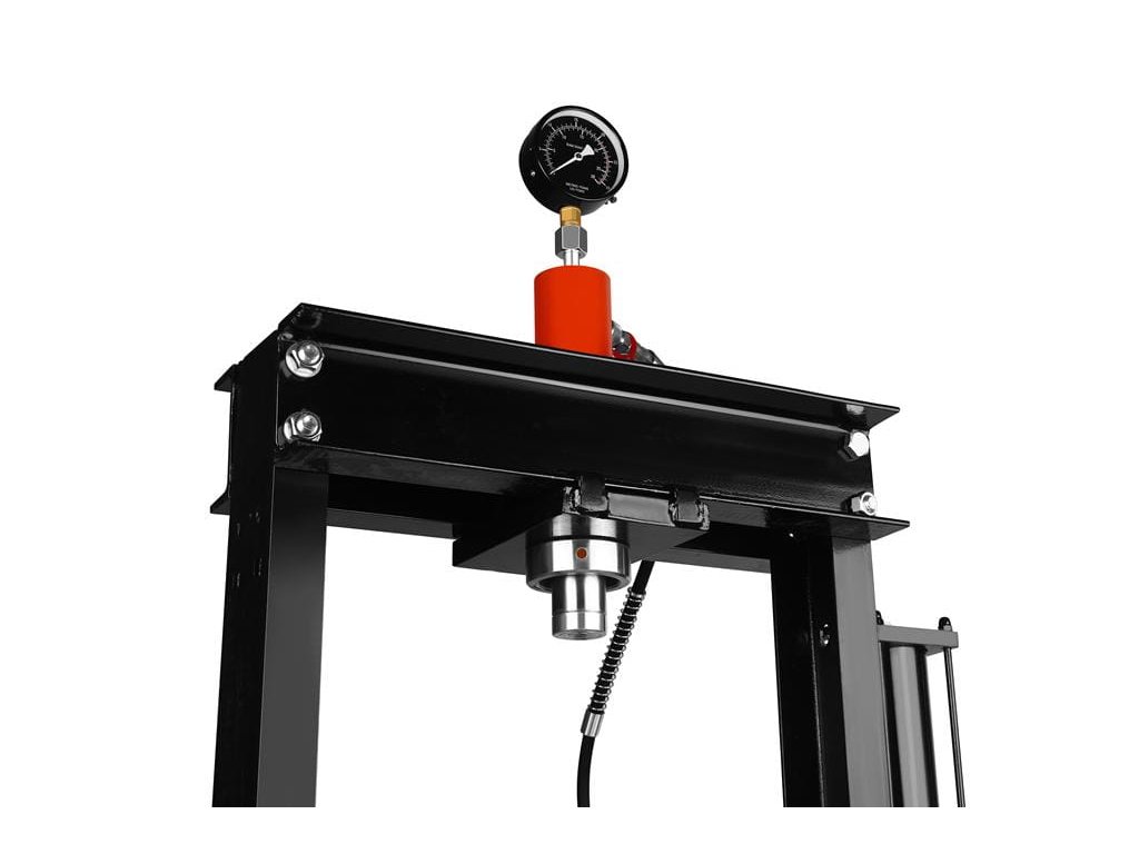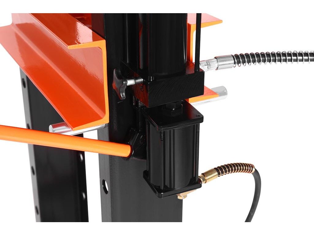 Hidraulična presa od 20 t s pomičnim klipom iznimno je čvrst i svestran radionički uređaj, dizajniran za intenzivan rad u servisima, radionicama i proizvodnim pogonima. Zbog mogućnosti pomicanja klipa ulijevo i desno, uređaj omogućuje precizno prilagođavanje radnim dijelovima. Prilagodljiva radna polica sa 9 razina omogućuje prilagodbu radnog prostora trenutnim potrebama. Hod klipa 185 mm i tlak od 20 tona omogućuju udobno presovanje, ravnanje ili montažu dijelova koji zahtijevaju veliku snagu.